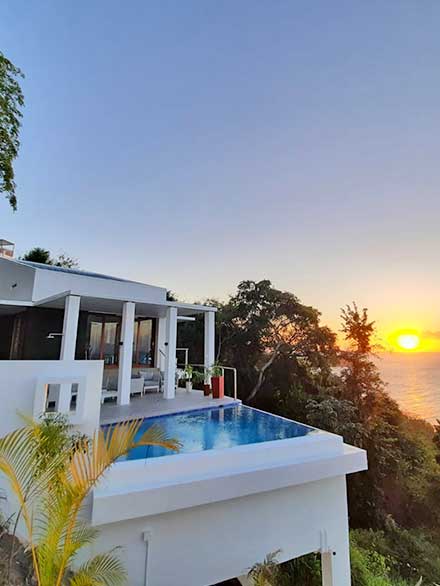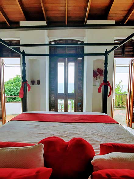 Enjoy a secluded mountain top villa with unhindered views of the Caribbean Sea on one side and vistas of Tobago’s verdant hills and valleys on the other.