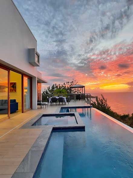 Perched on the edge of the mountainside and overlooking the turquoise Caribbean Sea, it is a quintessential take on eco-elegance. It is more than a villa, it’s modern, stylish and grand in every way whilst staying true to the essence of Being – nature, well-being, and exceptional views.