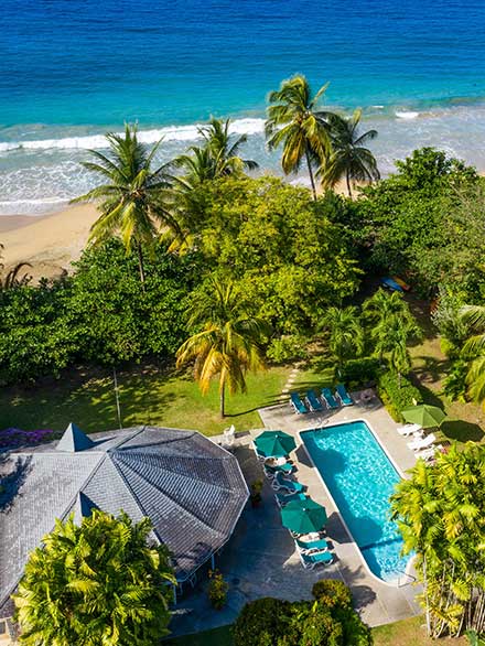 Located on Tobago's Caribbean coast, the 6 luxurious villas, fashioned in classical turn of the century colonial architecture, are nestled in a grove of tropical trees, on a gently sloping hillside overlooking the palm-fringed Stonehaven Bay. The emphasis is on elegant comfort amidst the serenity of nature. Each villa is fitted with all the modern amenities, and your own Villa Attendant. The Resort is ideal for a family holiday, reunion or an intimate wedding, our 'family' of friendly staff and the ambiance and warmth we provide assures a taste of paradise
