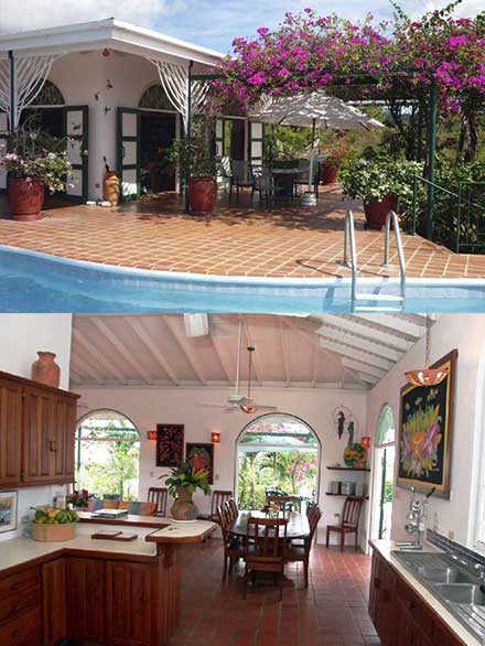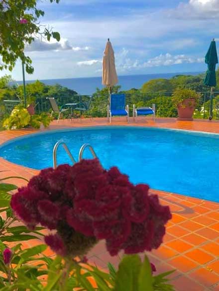 Top O’ Tobago is comprised of a main house and swimming pool at the top of the hill, three cabanas or self contained apartments at different levels along the hill ridge, and numerous gardens and patios, on six acres of tropical vegetation. It is breezy and relaxed.